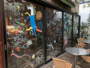 開店以来ずーっとやっているキットパスプロジェクとの、番外編。お店のガラス戸にどーんと描きます。
